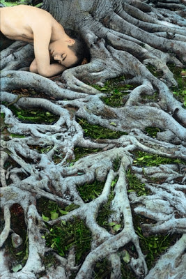 parla amb dolçor. La segueix, s’abracen i es fonen l’un en l’altra. S’estenen