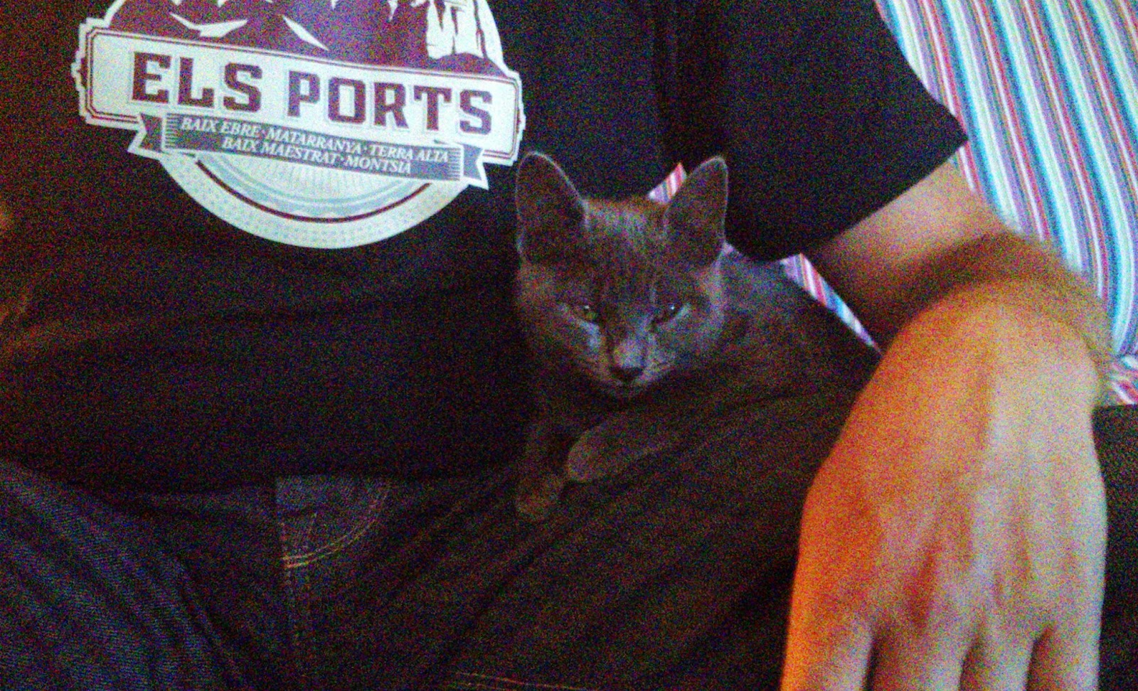 La meva GATA ALEGRE I COMBATIVA acaba el dia panxa en amunt amb mi al sofanet... Ha lluitat amb les moscardes, les vespes i la resta d'insectes que vivien feliçment entre les fulles de les plantes, al terrat. També ha fet combat amb els dragonets que entren i surten per la finestra de la biblioteca. Si hi havia ratolí, deu haver fugit a terme de Benifallim. I com no té prou amb tots aquells combats, ara vol seguir amb els botons de la meva camisa i les tecles de l'ordinador... CATERINA D'ARAGÓ, EN UNA MA UNA GRANERA I EN L'ALTRA UN CANYÓ...