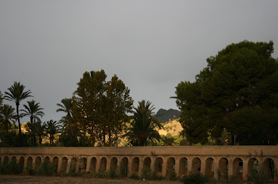 A l'entrada de la ciutat d'Oriola hi ha un aqüeducte. És bonic, el recorde bonic, entre palmeres altes i orgulloses. Al barri de «San Antón» hi ha moltes de palmeres (o hi havia) fins arribar a la porta de la ciutat, una porta que dona a les façanes de l'antiga Universitat de «Santo Domingo». Un sol atemperat de tardor em ve ara al pensament i, sota el sol, un llarg passeig entre aquelles palmeres.
