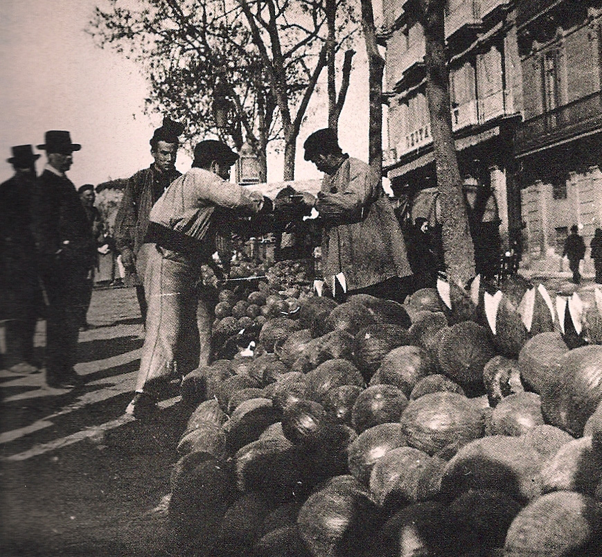 Y los puercos encajando sus ocicos entre mitades de sandía en los corrales, mojando las durezas de sus pelos tiesos y mordiendo ansiosos entre gruñidos.